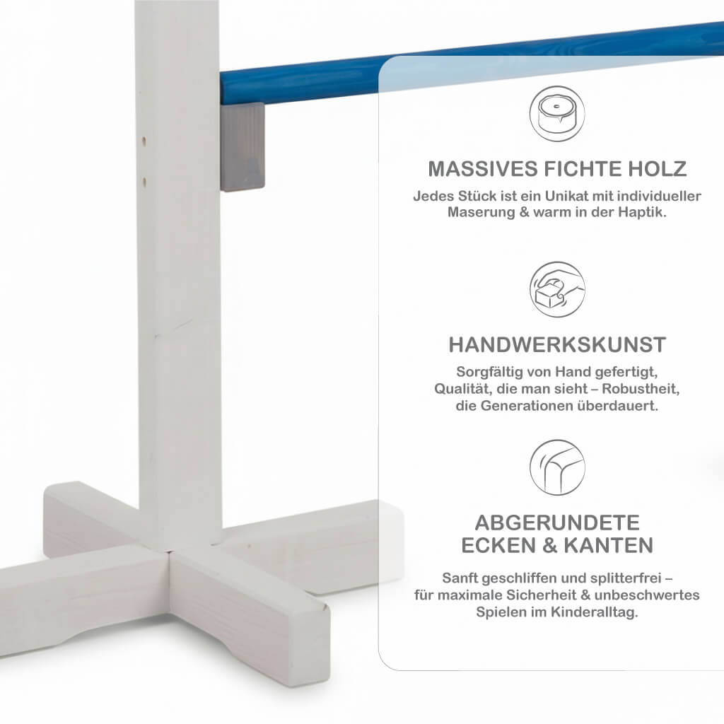 - Hochwertiges Massivholz: Unser Kinder Springhürde-System besteht aus robustem Fichte-Tanne Holz, das langlebig und sicher für Ihre kleinen Reiter ist.
