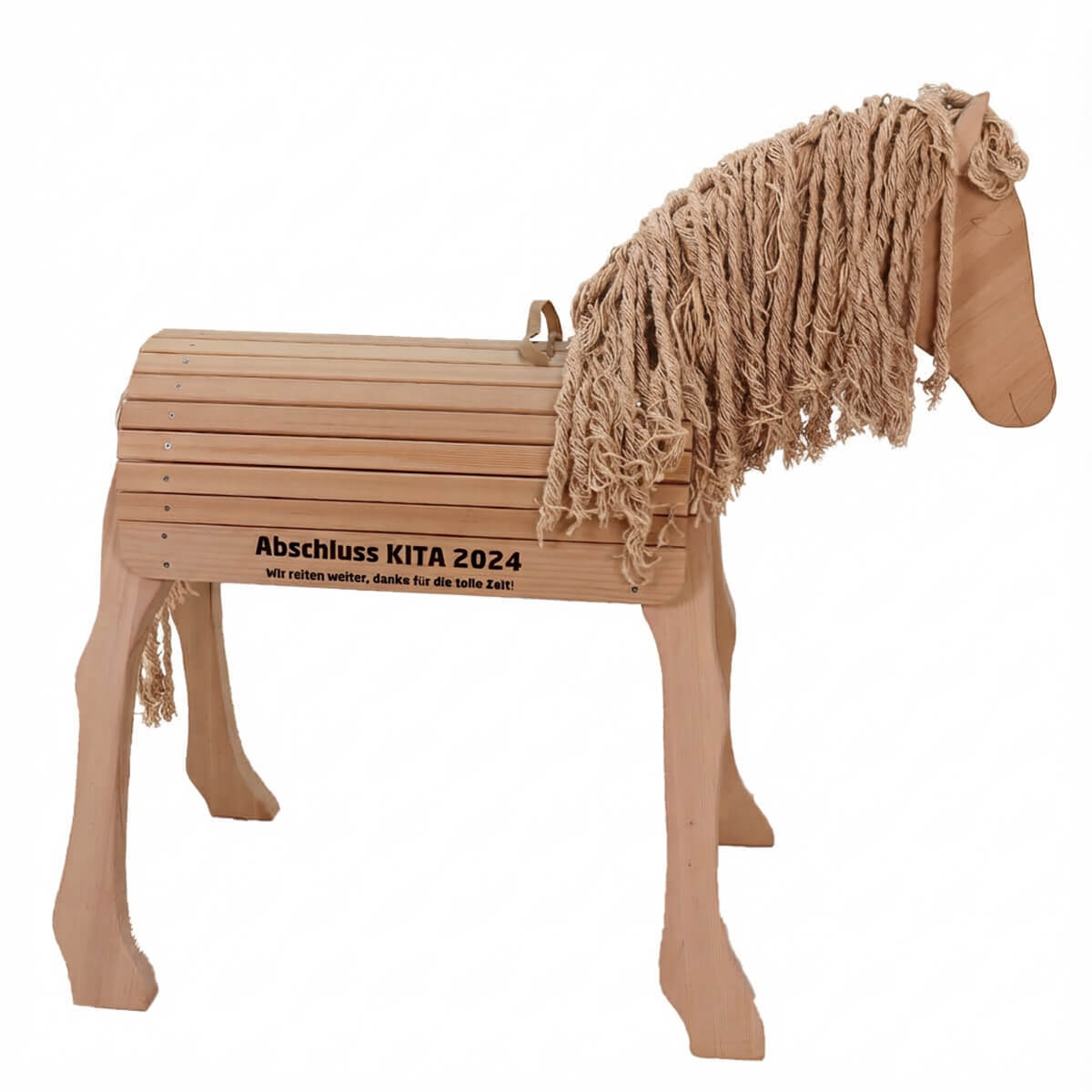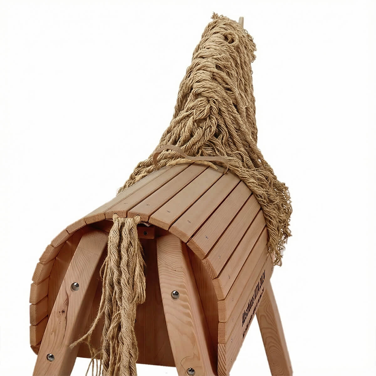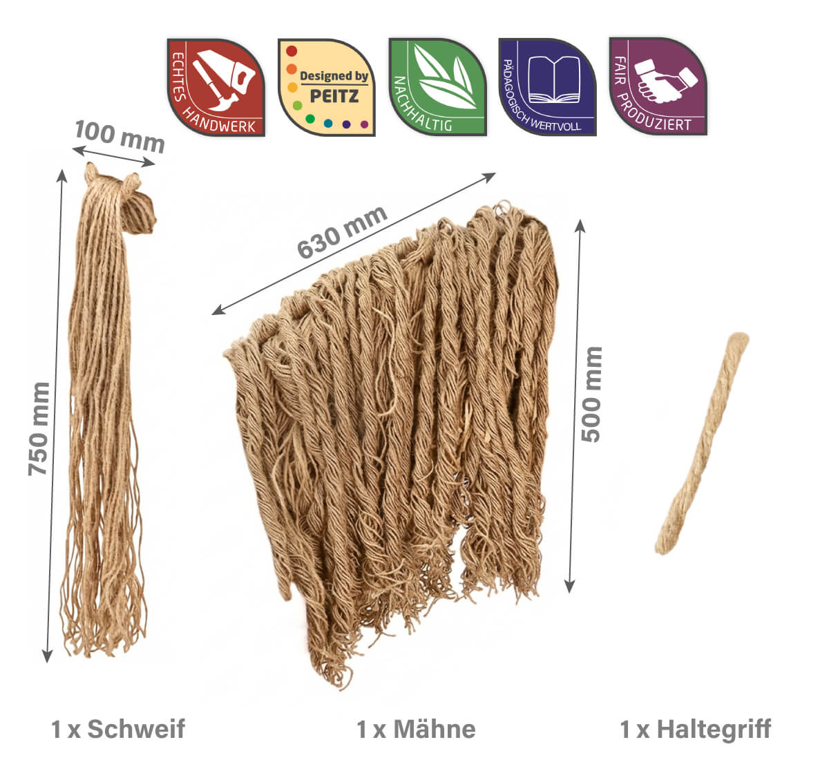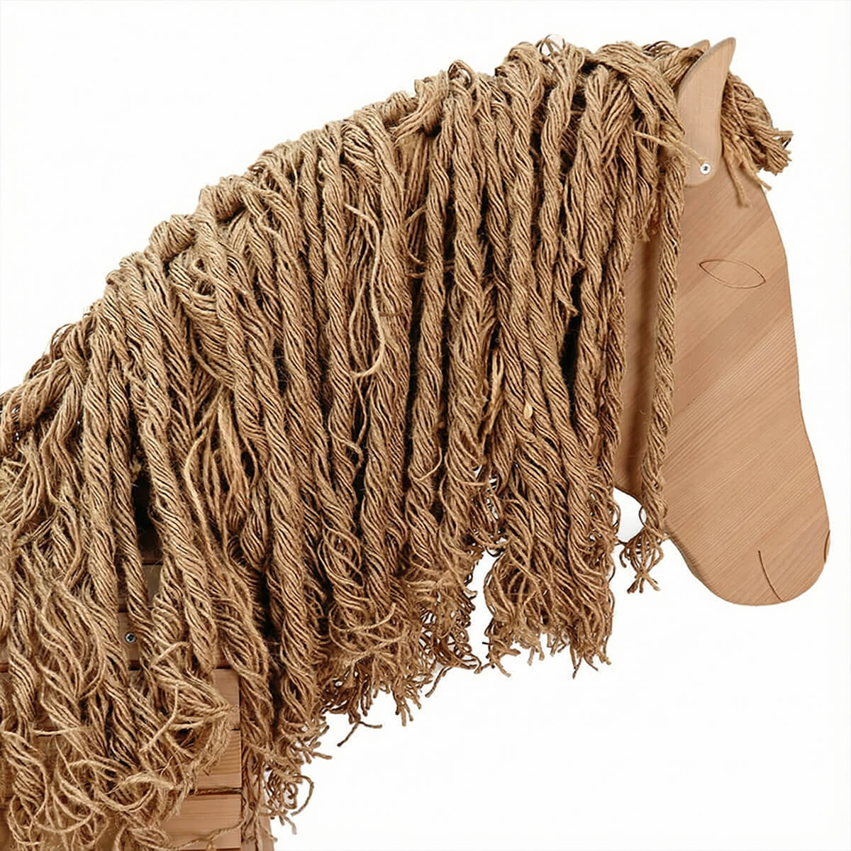 Wir verzichten ganz bewusst auf Kunsthaar Mähnen für Holzpferde. Stattdessen setzen wir auf nachhaltige Jutefasern in Form von Sisal-Seil – langlebig und umweltfreundlich.