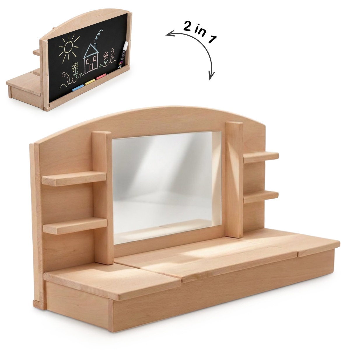 Kinder Friseursalon aus Massivholz 2in1 + Maltafel auf der Rückseite