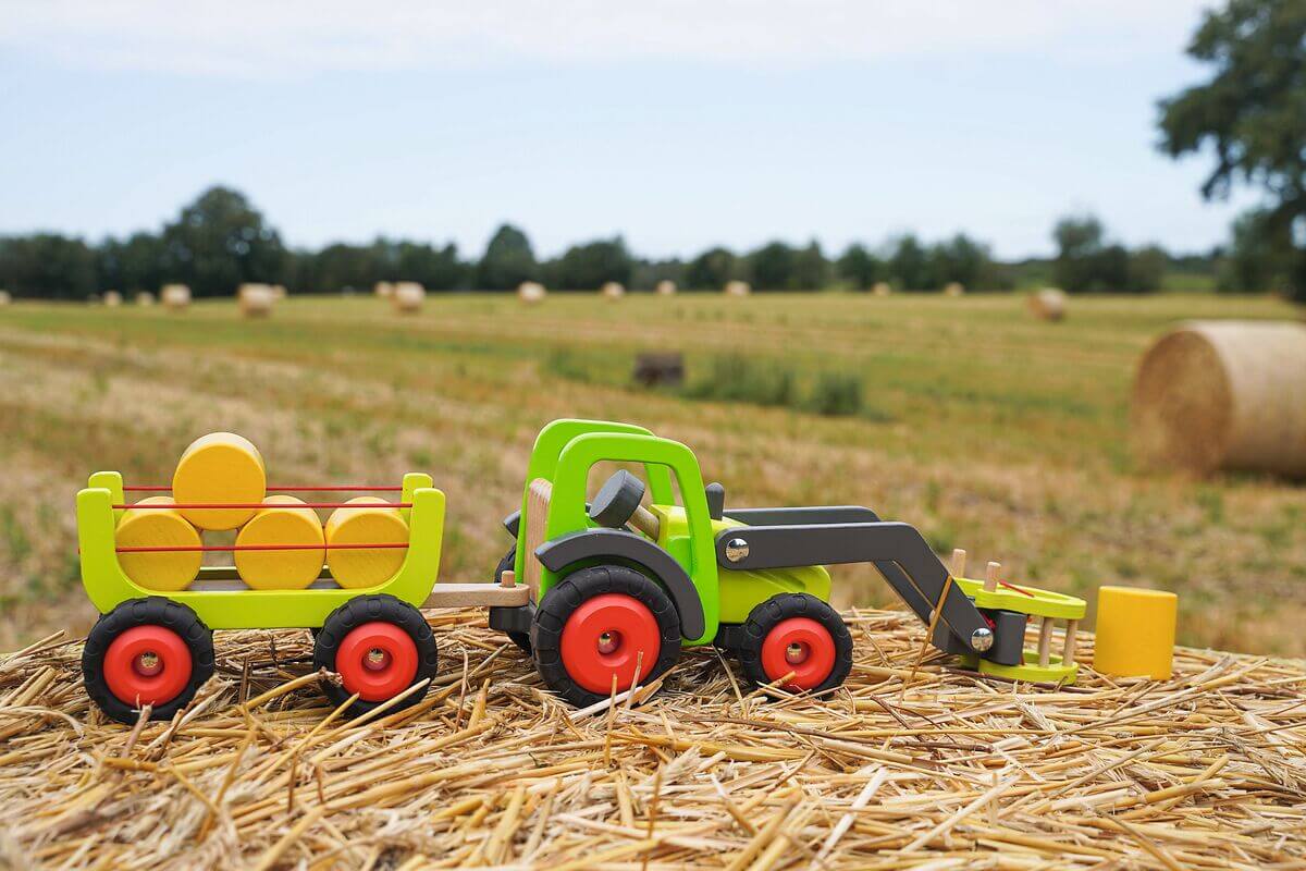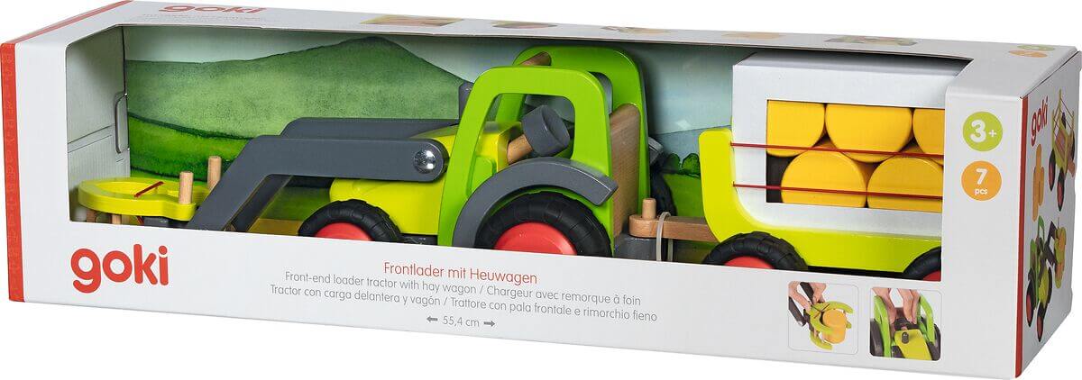 Bring echtes Bauernhof-Feeling in das Kinderzimmer! Der Goki Premium Frontlader mit Heuwagen ist der perfekte Begleiter für jedes Kind, das von der Landwirtschaft träumt. Mit seiner hochwertigen Verarbeitung, dem voll funktionsfähigen Ballengreifer und der lenkbaren Steuerung wird der Frontlader zum echten Spielspaß für die Kleinen. Das perfekte Zubehör für den Kinder-Bauernhof. Hole dir dieses Premium Holzspielzeug und lass das Abenteuer beginnen!