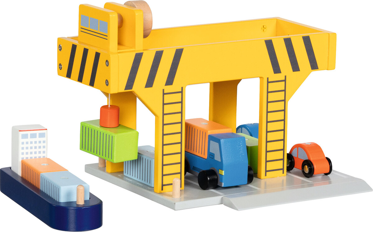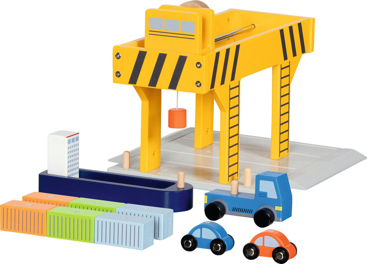 goki Hafenkran Set aus Holz - 13-teilige Spielwelt Hafen