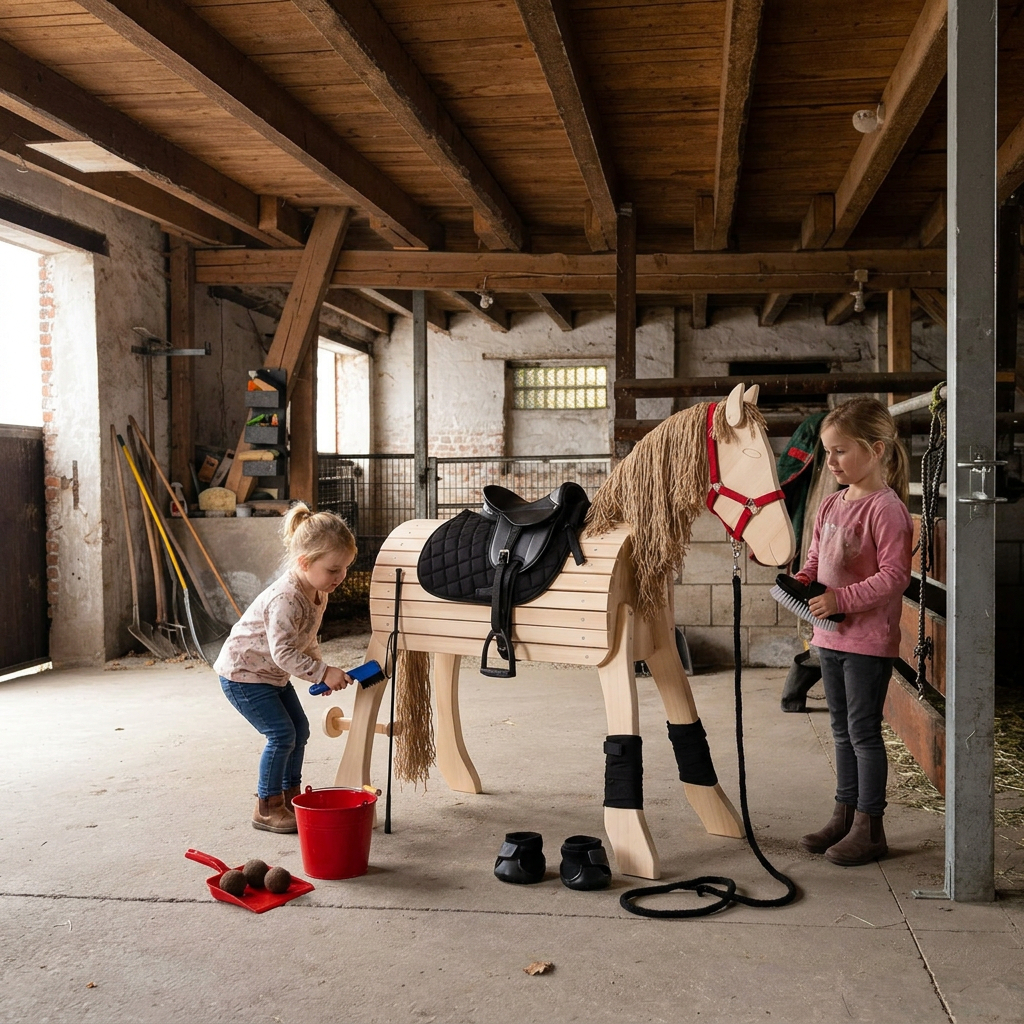 Holzpferd mit Zubehör ausstatten