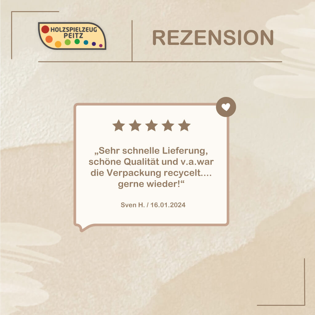 - Sven H., 16.01.2024Sehr schnelle Lieferung, schöne Qualität und v.a.war die Verpackung recycelt....gerne wieder!