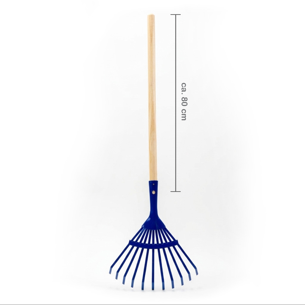 Der Kinder-Fächerbesen überzeugt durch eine stabile und kindgerechte Ausführung – perfekt für kleine Gärtnerinnen und Gärtner ab 3 Jahren. Der lange Natur-Holzstiel (ca. 800 mm) liegt gut in kleinen Händen. Der flexible, farbig lackierte Fächerkopf eignet sich ideal zum Zusammenkehren von Laub, Gras oder kleinen Gartenabfällen. So wird Gartenarbeit zum Spiel!