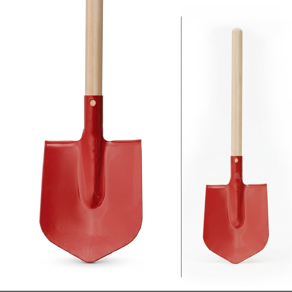 Kinder-Spitzspaten ROT mit Natur-Holzstiel | Metallspaten