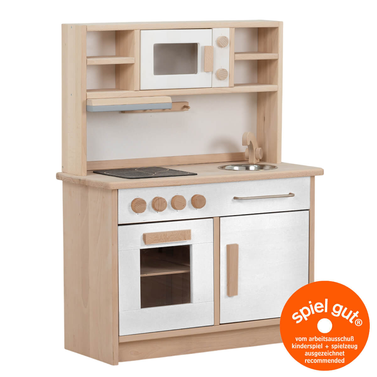 Spielküche Gretel in weiß/natur - mit Mikrowelle & Dunstabzug