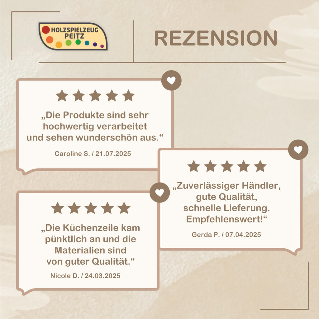 Dazu bieten wir eine große Auswahl an Kinderküchen Zubehör an. Darunter Komplett-Sets und Einzelprodukte wie verschiedene Kochutensilien und Spiellebensmitteln. Mit diesen Ergänzungen können Kinder ihre kulinarische Fantasie voll ausleben und das Rollenspiel in der Küche authentischer gestalten.