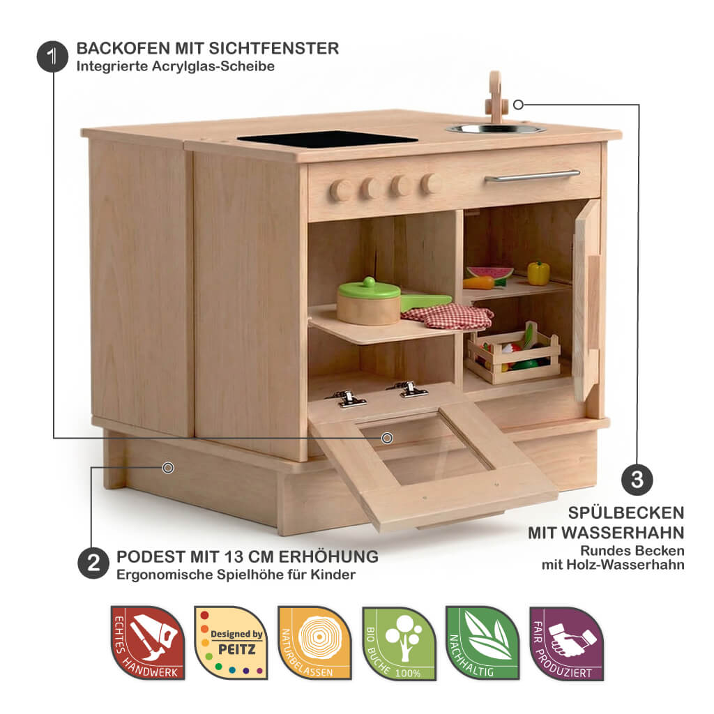 - Hochwertiges Kinderküchen-Set aus Holz für realistischen Spielspaß