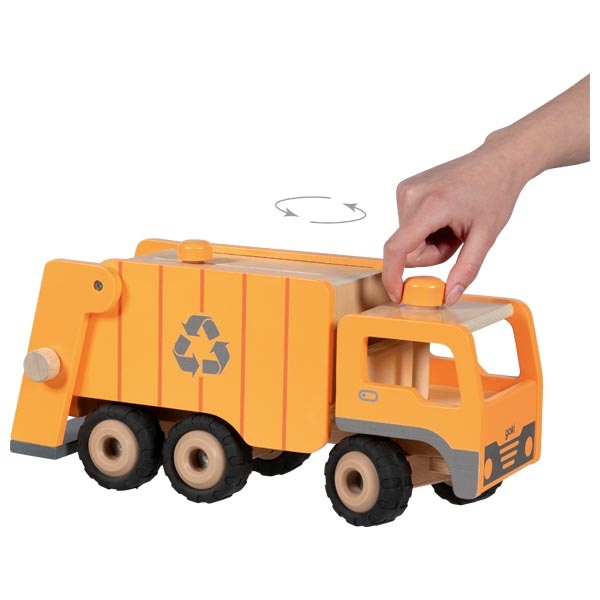 Goki Müllwagen Eco aus Holz – Lenkbar und mit Kippfunktion