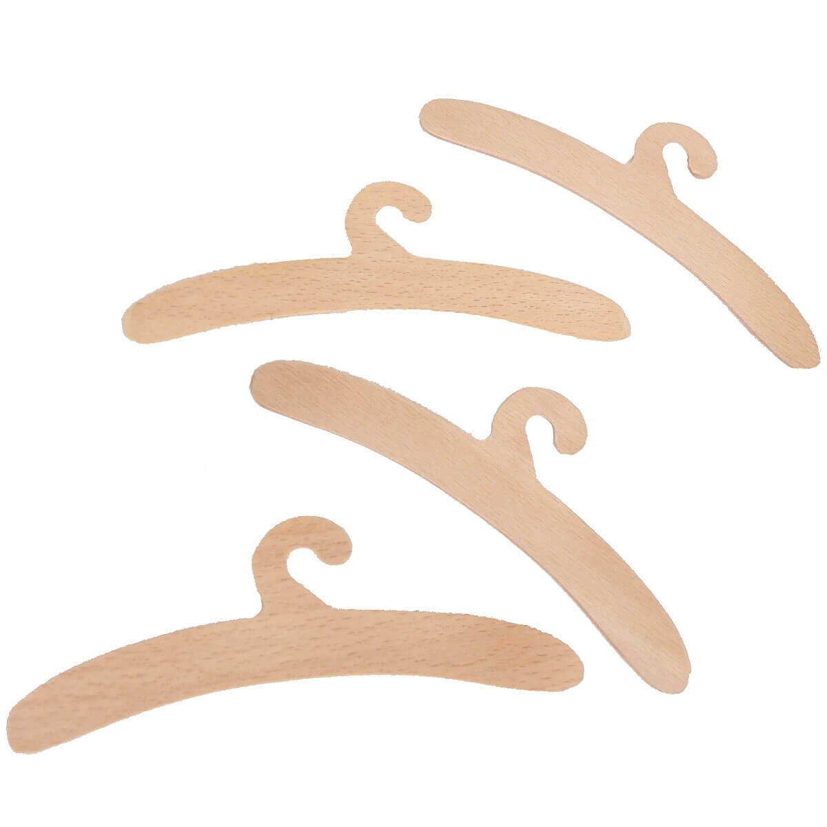 Startseite » Puppen Möbel & Spielzeug » Puppenbett | Bettwäsche » Puppen-Kleider-Bügel-Set | 4 Kleiderbügel aus Holz für Puppen 5011