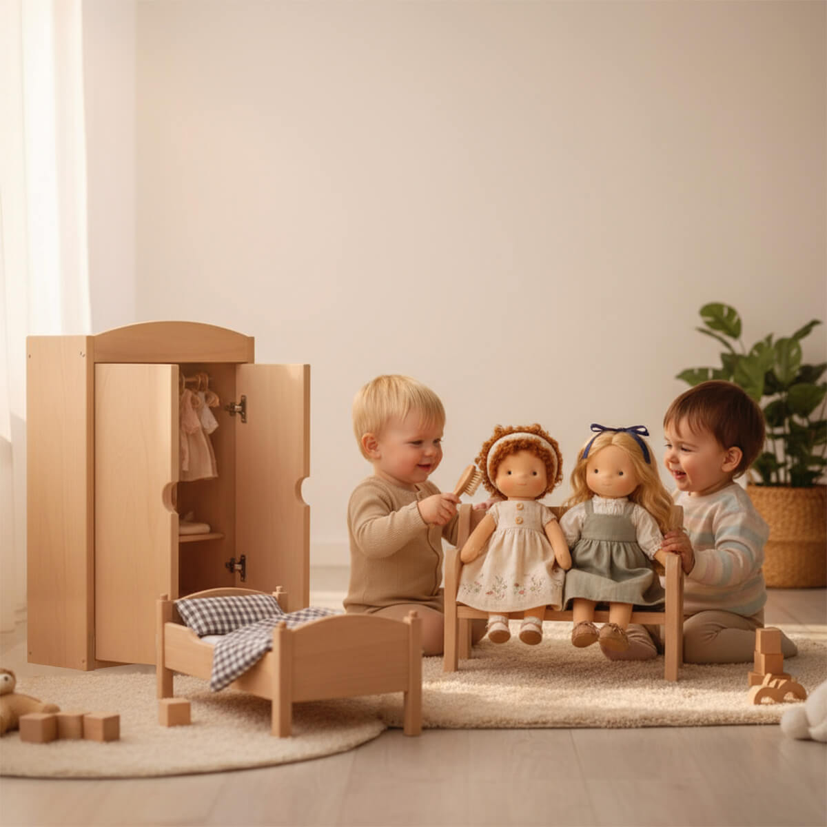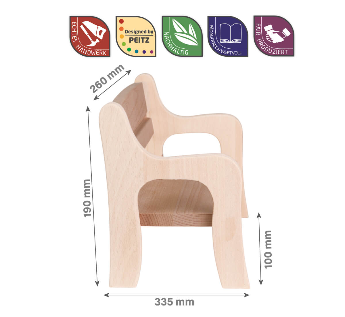 In der kindlichen Entwicklung spielt das freie Spiel eine wichtige Rolle. Unsere Puppenbank aus Natur Buchenholz massiv bietet Kindern die Möglichkeit, ihrer Fantasie freien Lauf zu lassen und in die Welt der Puppen einzutauchen. Ob beim gemeinsamen Teetrinken oder beim Verkleiden - die Puppenbank lädt zum kreativen Spiel und Geschichtenerzählen ein.