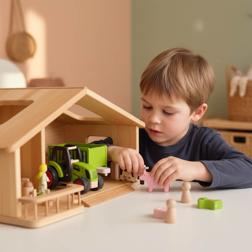 - Optional mit Zubehör wie Puppen, Möbel, Holztraktor & Holzfiguren