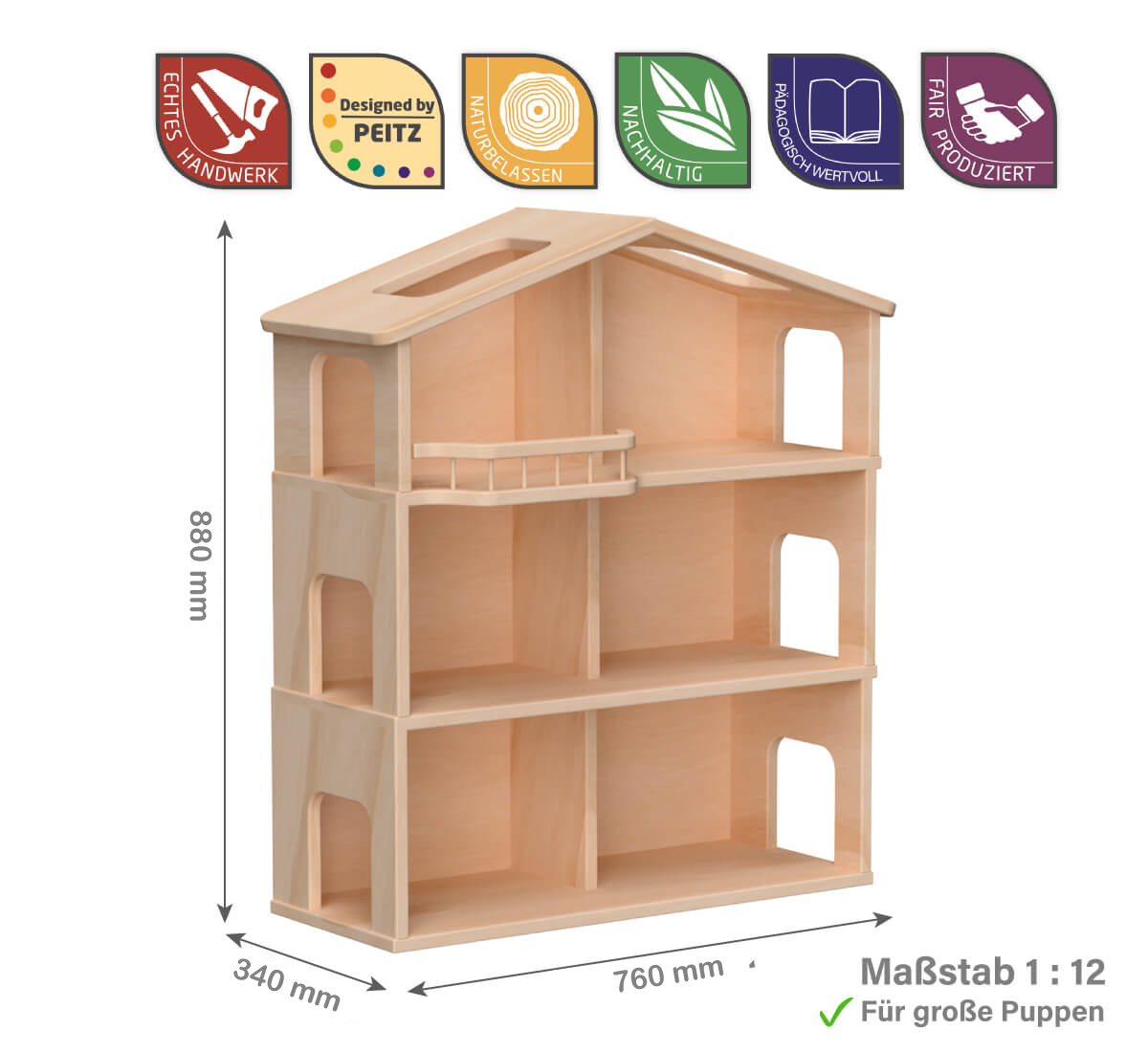 Puppenhaus groß aus massivem Buchenholz - Qualität die begeistert
