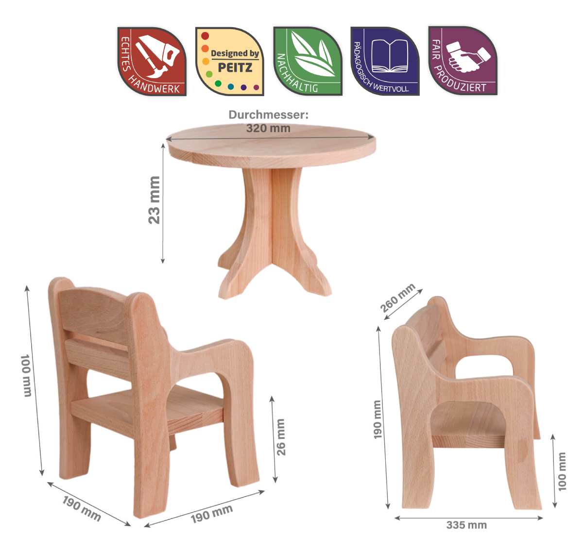 Puppenmöbel in hoher Qualität aus massivem Natur-Buchenholz