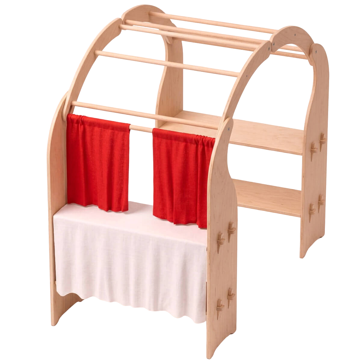 Verwandel den Spielständer mit diesem Vorhang zum zauberhaften Puppentheater! Stell dir vor, wie die Kinderaugen leuchten, wenn der rote Vorhang zur Seite gleitet und die Vorstellung beginnt. Mit diesem Puppentheater Vorhang wird jeder Spielständer zum Mittelpunkt fantasievoller Vorführungen.