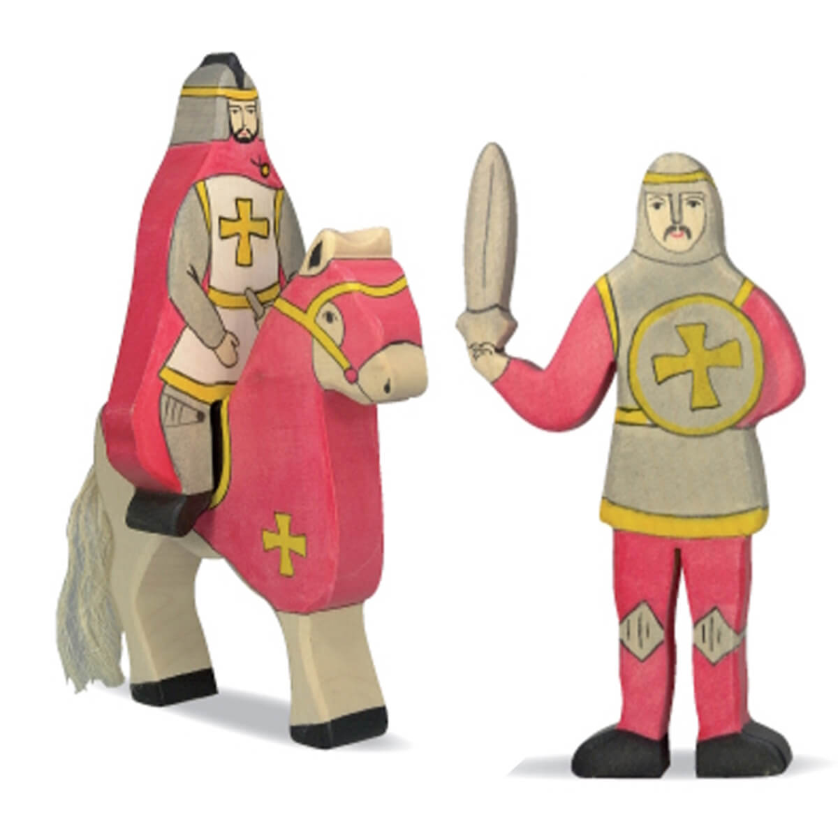 Holztiger-Ritterburg-Spielfiguren im Set | Ritter – Pferd – Ritter mit Schwert rot