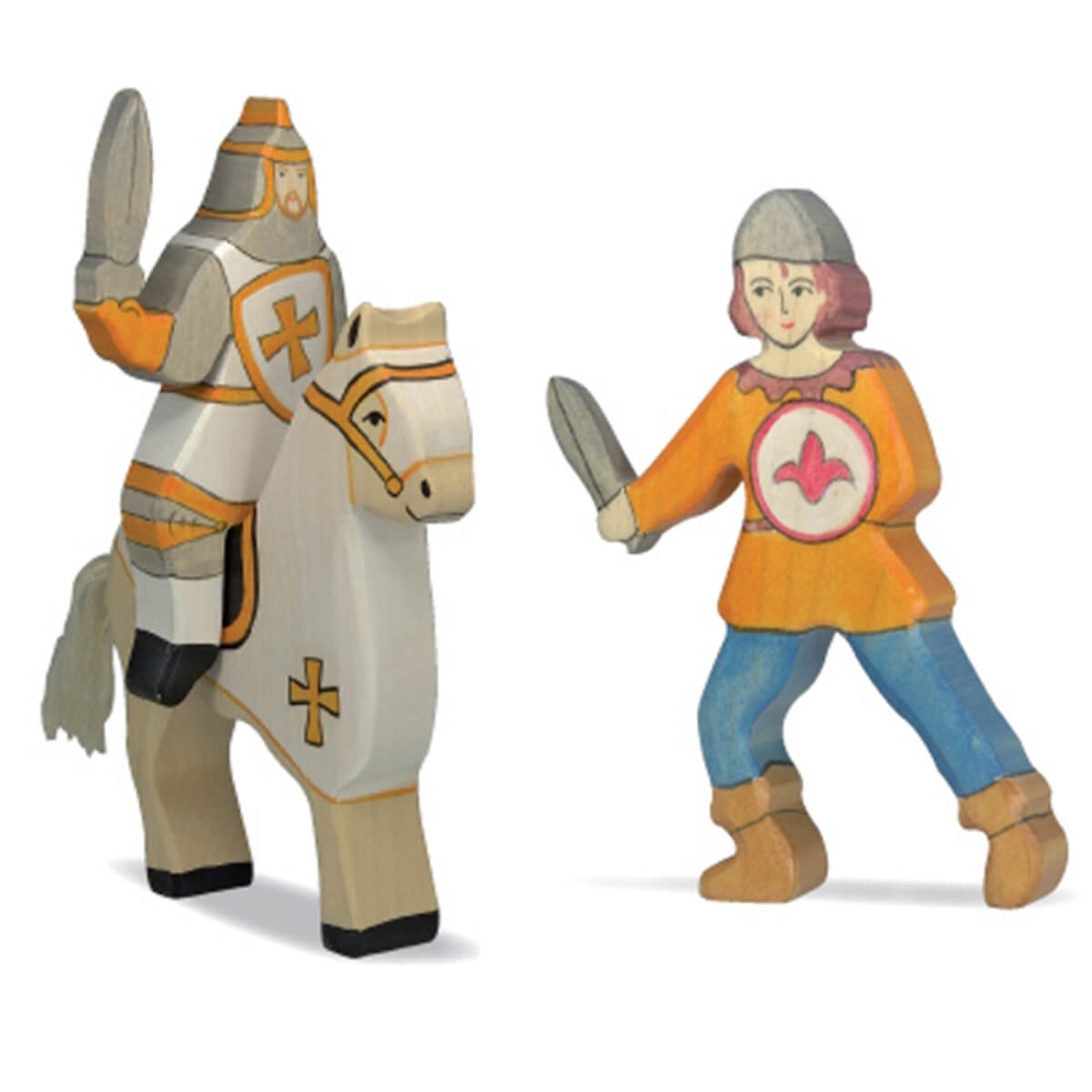 Holztiger-Ritterburg-Spielfiguren im Set | Ritter – Pferd – Knappe mit Schwert weiß