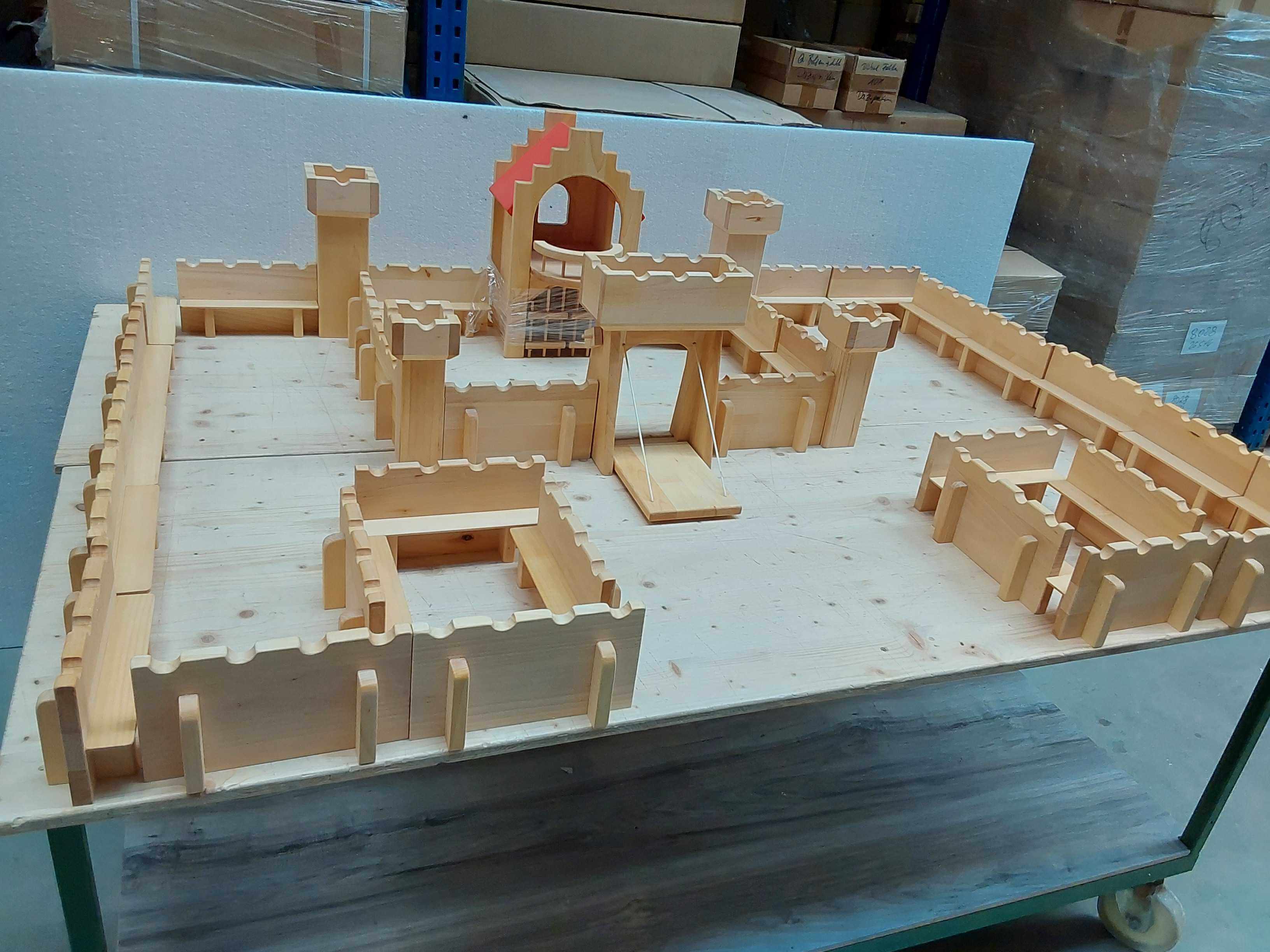 Großes Ritterburg Set 35-teilig | Altes Model aus Lindenholz geölt