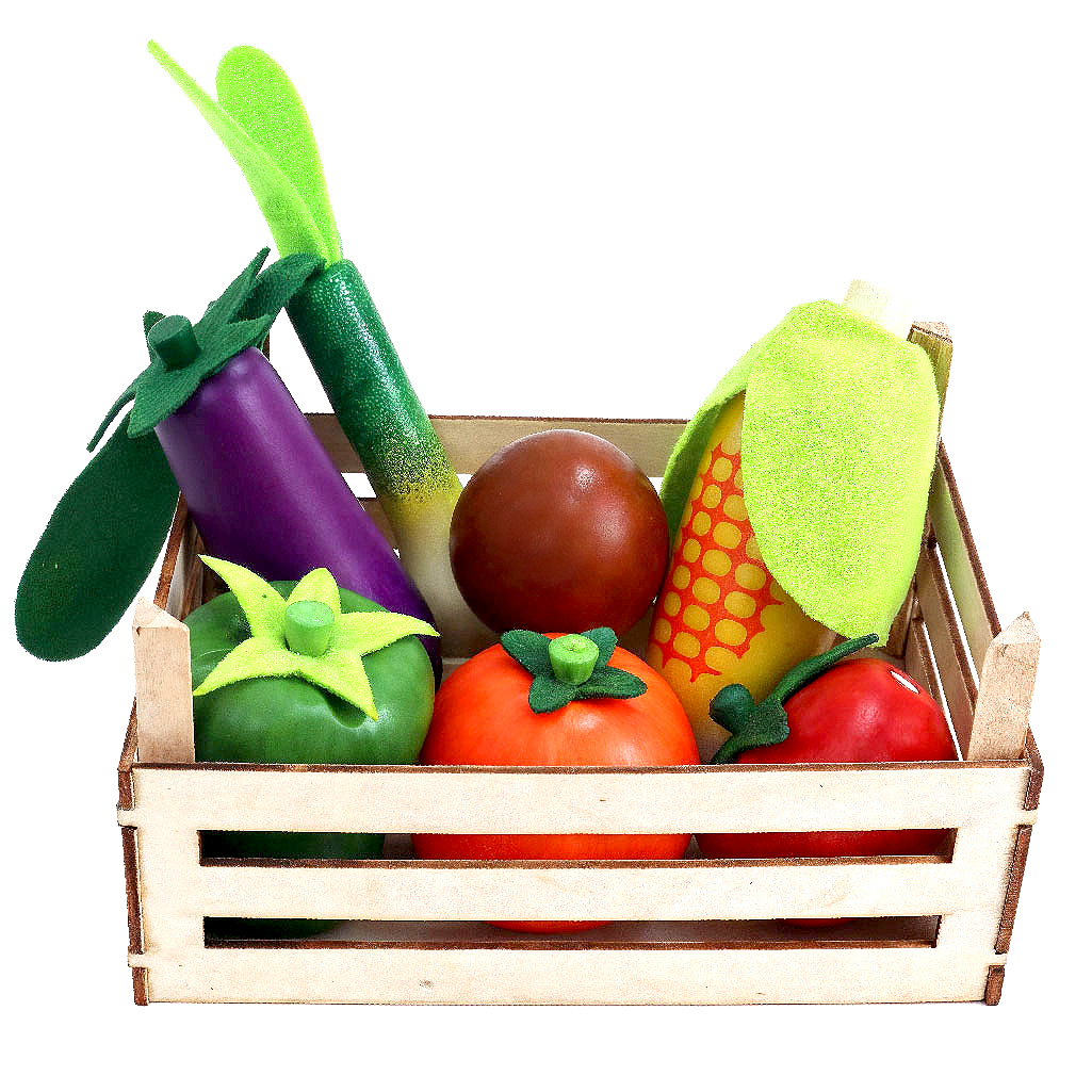 Spiellebensmittel Set aus Holz mit Gemüse, Früchte und Stiege
