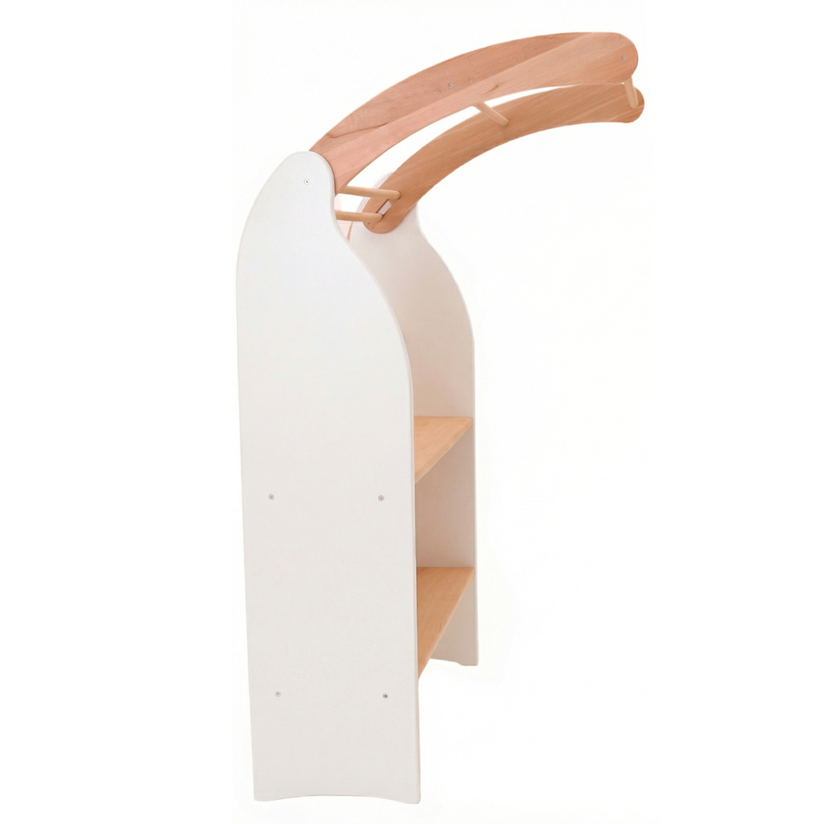 Das Spielständer KLEINE FINJA vereint weiße Seitenteile mit naturbelassenem Erlenholz zu einem harmonischen Waldorf-Spielständer, das Kinder zu kreativem, freiem Spiel einlädt. Die Kombination aus sanft lasiertem Weiß und warmem Erlenholz schafft eine freundliche Atmosphäre und passt perfekt in Kinderzimmer, Spielbereiche und pädagogische Einrichtungen.