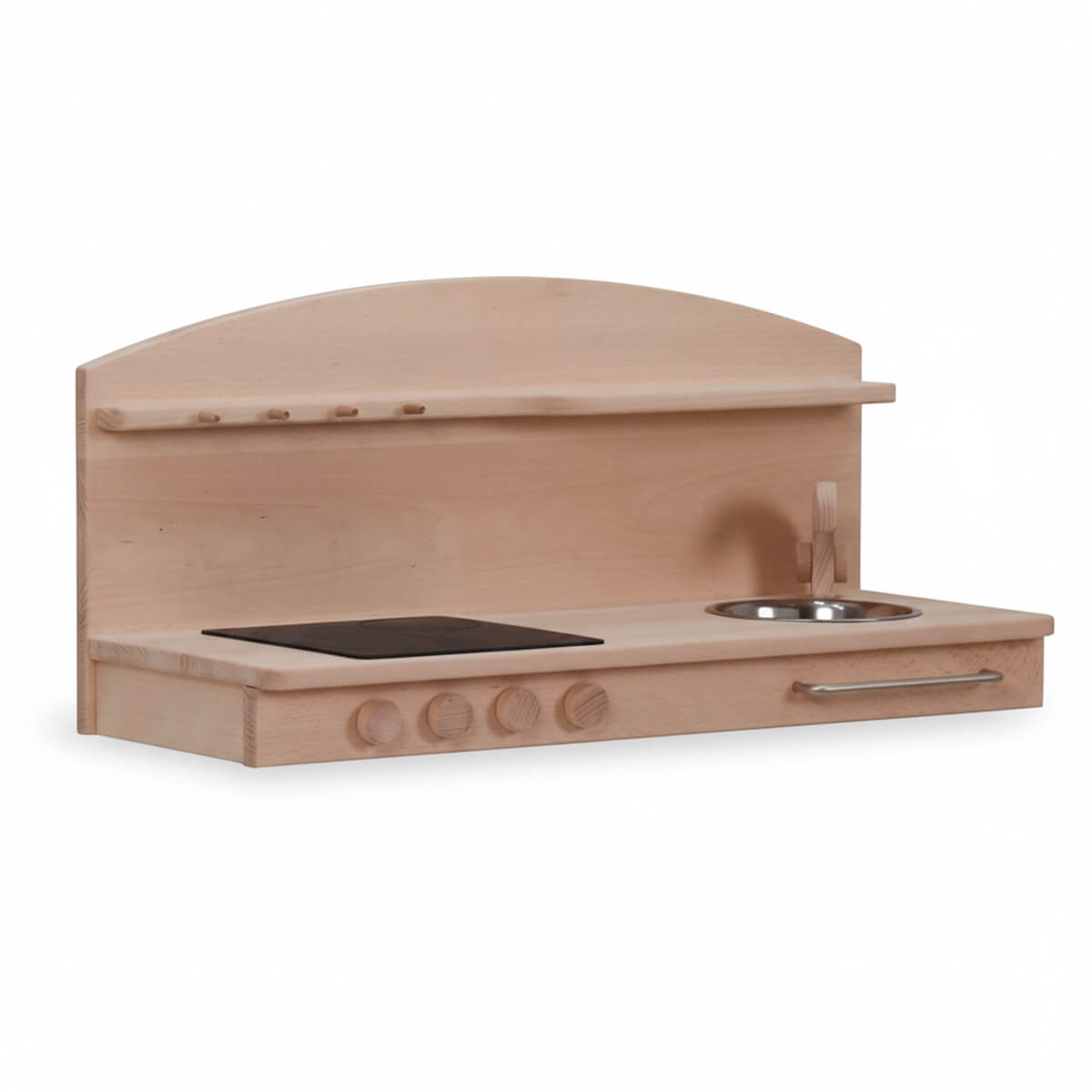 Die Tischküche ist aus massivem Buchenholz gefertigt, besonders stabil für langjährigen Spielspaß und in drei Varianten erhältlich.- Naturbelassen: Die naturbelassene Variante mit unbehandelter Oberfläche ist perfekt für alle, die die pure Schönheit des Holzes schätzen. Das Holz strahlt dabei eine natürliche Wärme aus und ist besonders geeignet für Eltern, die Wert auf die natürliche Optik und den Duft von unbehandeltem Holz lieben.