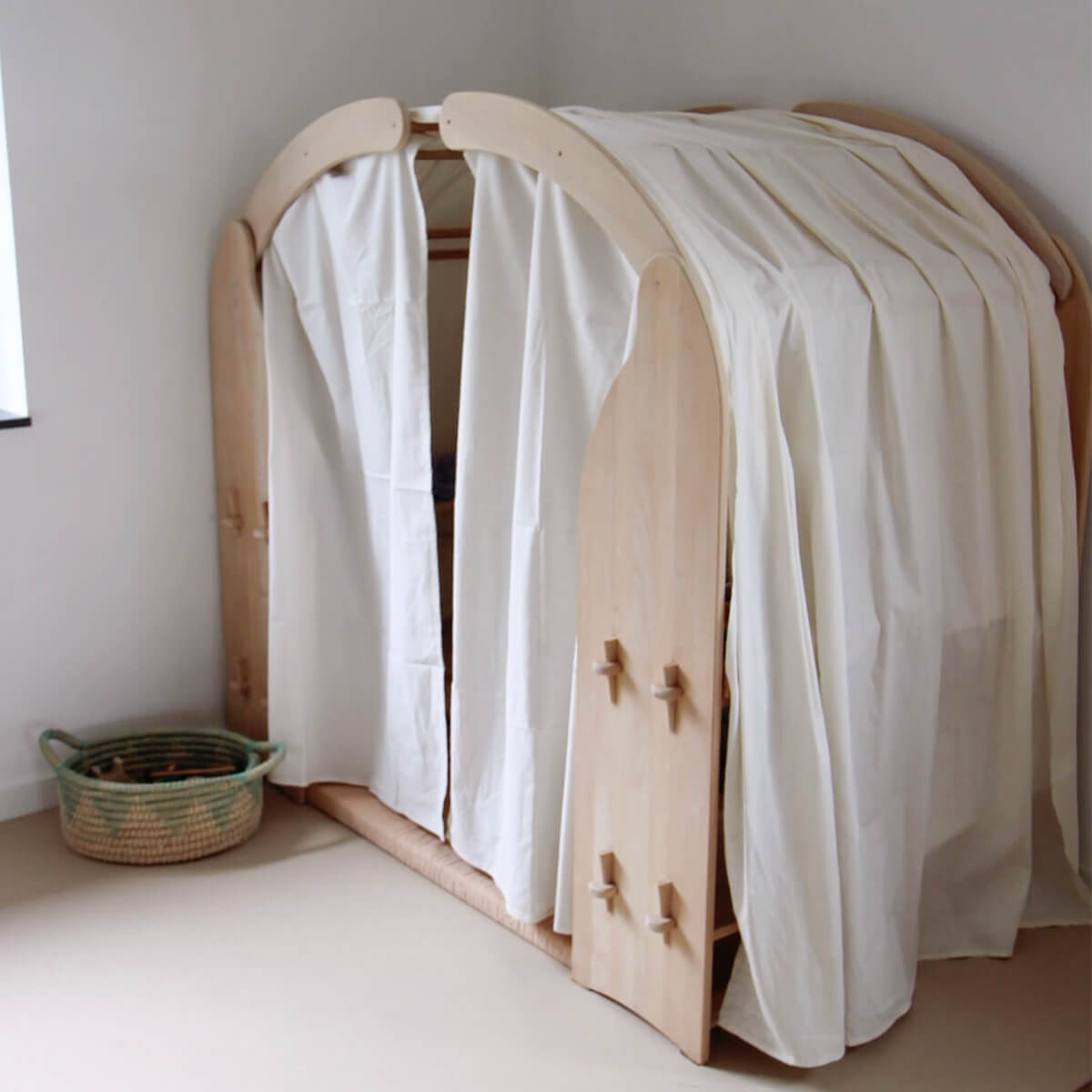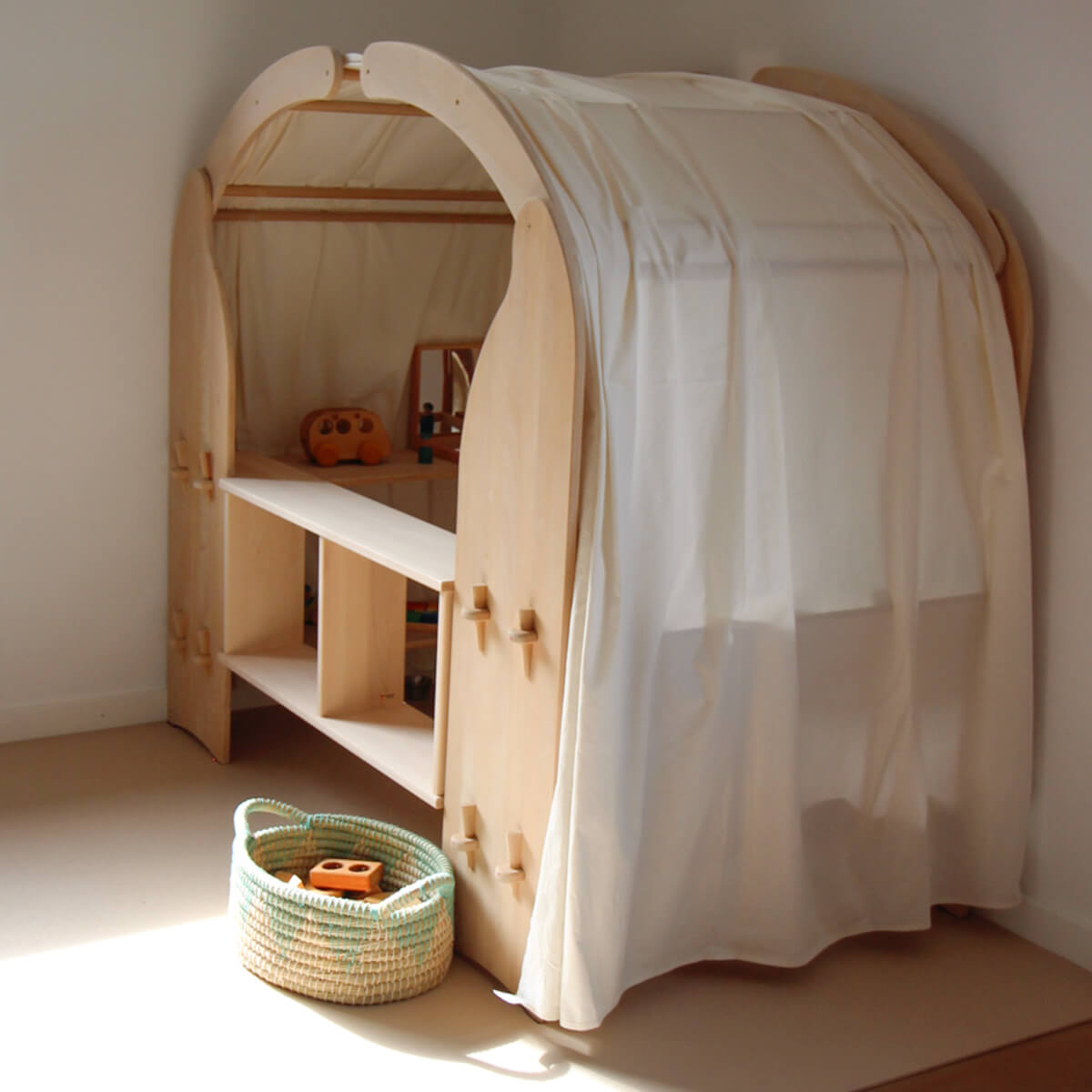 - Schafft Geborgenheit: Mit einem Tuch und einer Lichterkette dekoriert, wird der Spielständer zu einer sicheren Spielecke im Kinderzimmer – ein Rückzugsort zum Lesen und Träumen.