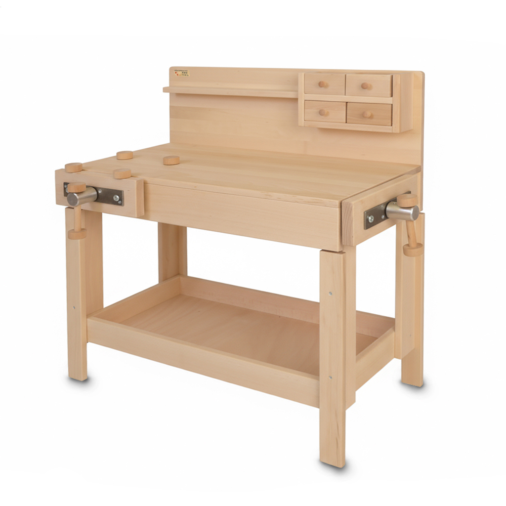 Kinderwerkbank MANNY mit 2x Schraubstock & Rückwand aus Massivholz 4015